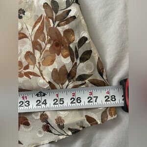 Elevate your wardrobe with this elegant floral button-up blouse. Featuring a beautiful cream and brown pattern.