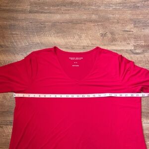 This red knit top by Susan Graver features a relaxed fit with long sleeves, perfect for versatile styling. The soft fabric and subtle V-neckline make it an ideal choice for both casual and formal occasions.