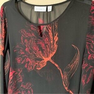 Susan Graver Placement Print Sheer Chiffon Black with Red Tunic with Keyhole - Size 6 Style number: A263001