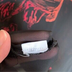 Susan Graver Placement Print Sheer Chiffon Black with Red Tunic with Keyhole - Size 6  Style number: A263001