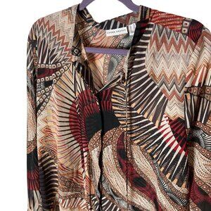 Susan Graver Printed Chiffon Top Sz 16 Bead Tie Boho Aztec Art Wear Career Large