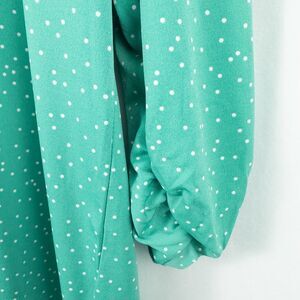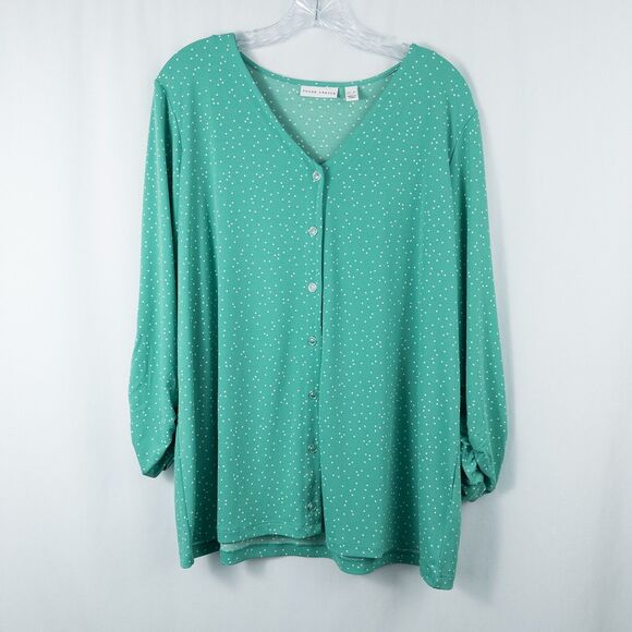 Susan Graver Printed Liquid Knit Button Front Shirt Womens XL Green Polka Dot