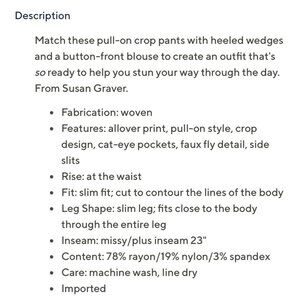 Susan Graver Printed Uptown Stretch Slim Leg Crop Pants Size 4 A575932 NEW