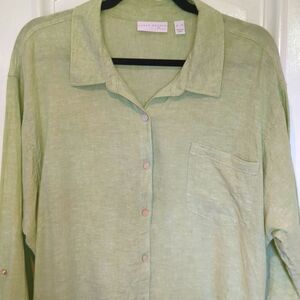 Susan Graver Pure Cross-Dyed Linen Blend Tunic Shirt Light Green XL