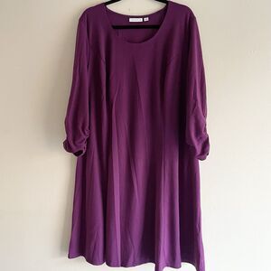 Susan Graver Purple Midi Dress Plus Size 3X A Line soft Knit Ruched Sleeve
