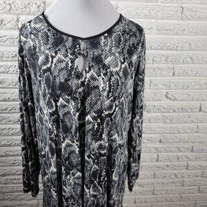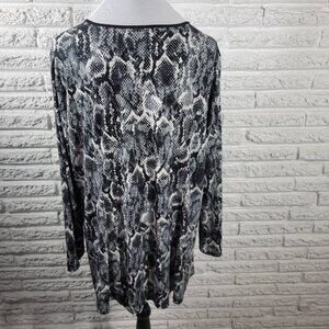 Susan Graver QVC Womens Top 1X Plus Tunic Keyhole Neck Black Animal ANI36XE