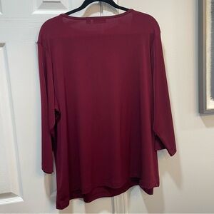 This stunning red blouse by Susan Graver showcases a chic ruffled design, adding a touch of elegance to any outfit. The blouse features a sophisticated style with ruffled details that make it perfect for both formal and casual occasions. Its vibrant dark red color ensures you stand out with confidence and flair.