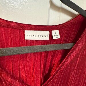 Susan Graver Red Silver Sparkle Sleeveless Blouse-Size Large