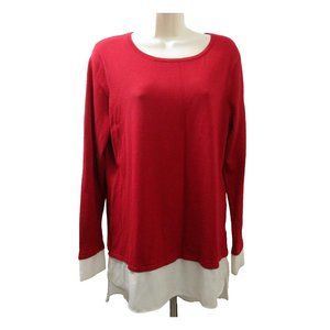 Susan Graver Red Sweater with White Under Blouse Sz Medium Layered 2-Piece Look