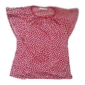 Susan Graver Red & White Polka Dot Short Sleeve Blouse Small Summer Liquid Knit