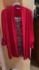Elegant blouse with a red and gray paisley pattern. Ideal for versatile styling.
