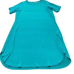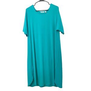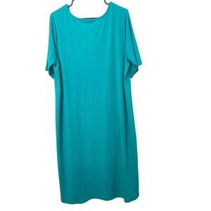 Susan Graver Regular Liquid Knit Elbow Sleeve Dress Teal Brilliant Jade Sz 1X