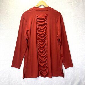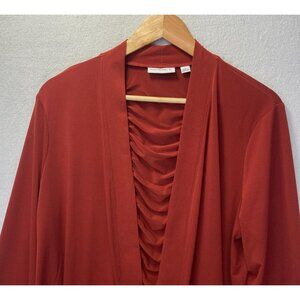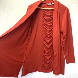 Susan Graver Ruched Open Front Cardigan Top Womens Large L Slinky Stretch Red