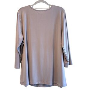 Susan Graver Scoop Neck 3/4 Sleeve Pullover Blouse Flowy Grey Beige Large