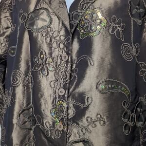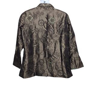 Susan Graver Sequin Embroidered Jacket Women's Plus Size 1X Brown/Green Dressy
