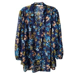 Susan Graver Sheer Clip Dot Blue Floral Blouse Tunic 2X Colorful Boho NEW Flaw