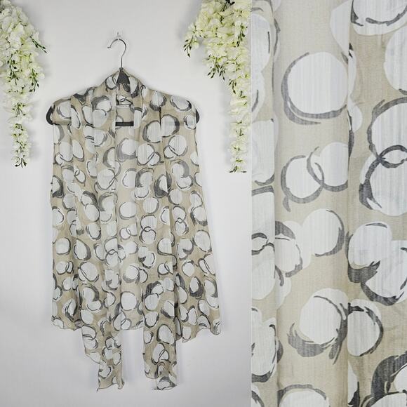 Susan Graver Sheer Open Front Lightweight Vest Large Abstract Circle Chic Artsy