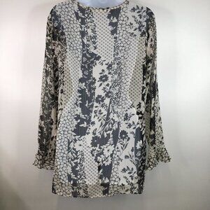 Susan Graver Sheer Tunic Blouse Long Sleeves Ruffled Size M