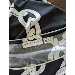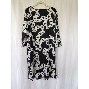 Susan Graver Shift Dress Women's Size Medium Black White Chains Office Church