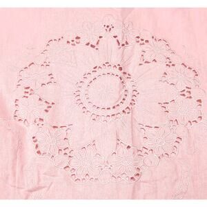 Susan Graver Shirt Blouse Women's Plus Size 2X Pink Linen Blend Eyelet Embroidered Cutouts Scallop Hem NEW NWT