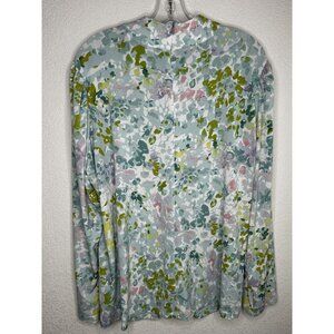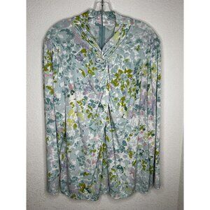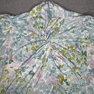 Susan Graver Shirt Womens 2XL Blue Green Floral Twist Front Long Sleeve Top
