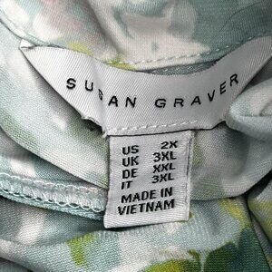 Susan Graver Shirt Womens 2XL Liquid Knit Twist Front Mock Neck Top Floral 2X