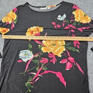 Susan Graver Shirt Womens XL Black Floral Bell Sleeve Liquid Knit Going Out