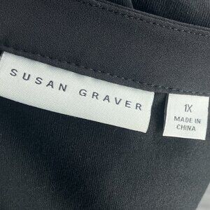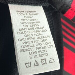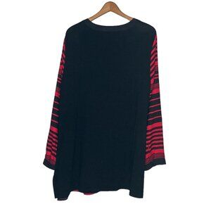 Susan Graver Size 1X Red Black Striped Chiffon Front Knit Back V-Neck Top Plus