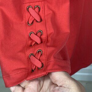 Susan Graver Plus Size 3X Liquid Knit Open Front Cardigan 3/4 Sleeve Lattice Detail Cuff Red