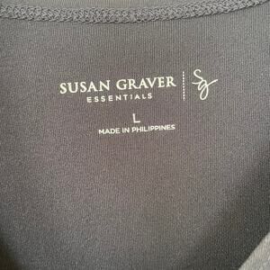 3/4 Sleeves. No flaws. V neck. Size L - Feels a bit thicker fabric than liquid knit but still stretchy.