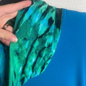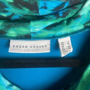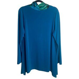 Susan Graver Size Large Liquid Knit Cowl Neck Long Sleeve Tunic Blouse Top Blue