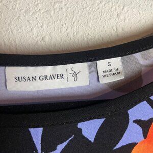 Susan Graver Size S Floral Printed Liquid Knit Asymmetrical Hem Tunic Top Blue