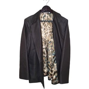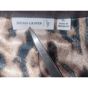 Susan Graver Size XL City Denim Brown Boyfriend Jacket w/Animal Print Lining