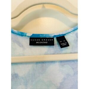 Susan Graver Size XL Stretch Knit Blue Watercolor Print Short Sleeve Top