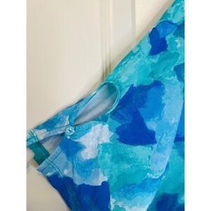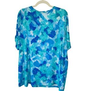 Susan Graver Size XL Liquid Knit Blue Watercolor Print Short Sleeve Stretch Top