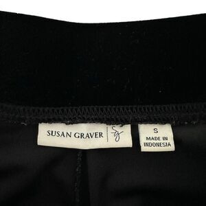 Susan Graver Small Black Pull On Stretch Velvet Wide Waistband Pant A4550