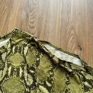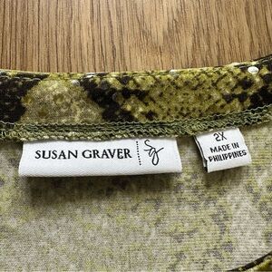Susan Graver Split Sleeve Snake Print Blouse 2X Green Sequin Liquid Knit Shirt