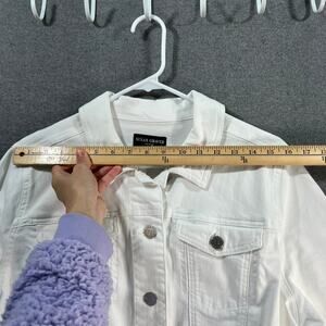 Susan Graver Stretch Denim Size M White Button-Front Frayed Jean Jacket