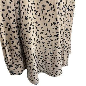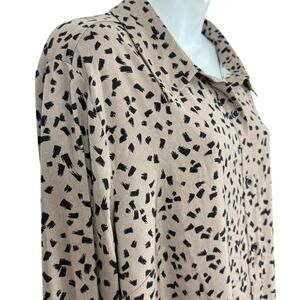 Susan Graver Stretch Knit Button Up Long Sleeve Top Shirt Blouse Beige Black 1X