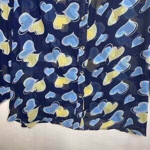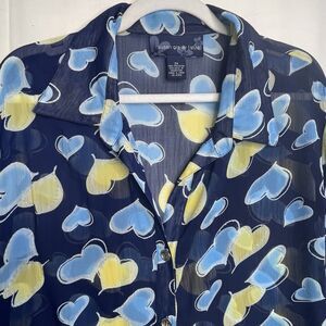 Susan Graver Style Blouse 2x Blue Yellow Hearts Love Romantic