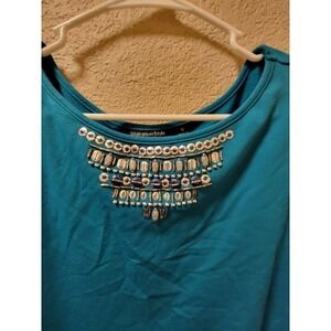 Susan Graver Style Blue Long Sleeve Blouse With Beaded Nackline Size 1X.