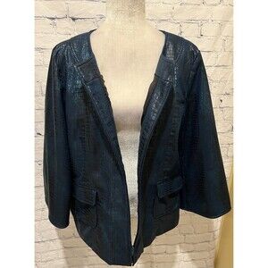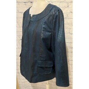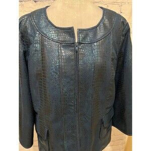 Susan Graver Style Jacket QVC Faux Crocodile Leather Black & Blue Woman’s Large