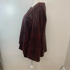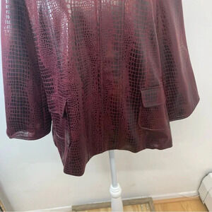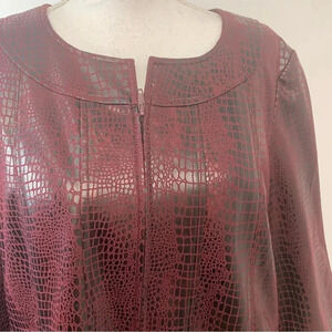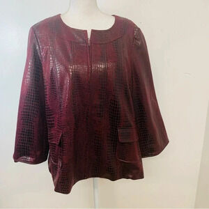 Susan Graver Style Jacket Woman Large Maroon Snake Print Texture Pockets Career