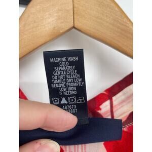 Susan Graver Style Red White Floral Pleated Tunic Top 1X Boho Coastal. Measurements are approximate.