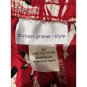 The Susan Graver Style Skirt is a versatile and stylish addition to any woman's wardrobe. This plus size 2X skirt in black and red with a people print features a pull-on closure and an elastic waist for comfort. Made from lightweight polyester, it is machine washable and suitable for casual or business occasions. The knee-length pencil skirt is perfect for all seasons and can be worn year-round. Perfect for adding a touch of classic style to your outfit. 36 inch elastic pull on waist and 26 inches long. Smoke free home.