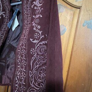 Susan Graver Burgundy outfit. New with Tags. 100% Polyester. Size Medium. Embroidery all over Jacket.