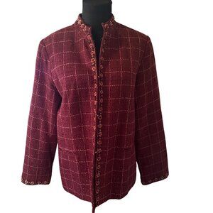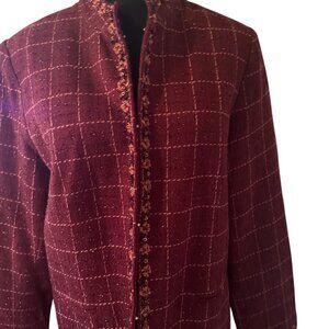 Susan Graver Style burgundy with floral trim blazer jacket size M
