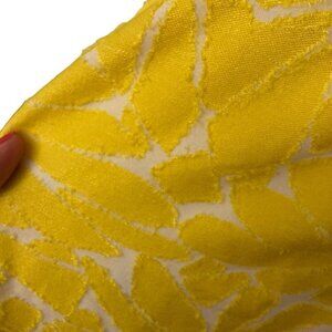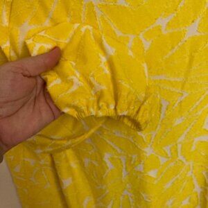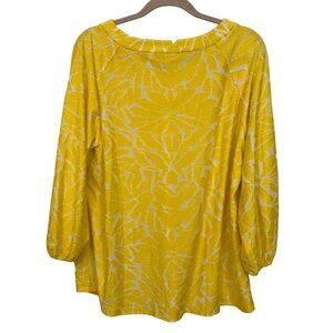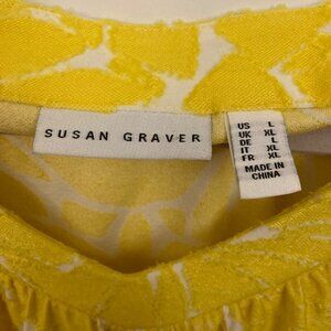 Susan Graver Sunny Yellow White Mixed Media Blouse V-Neck Elastic Cuff Sz L