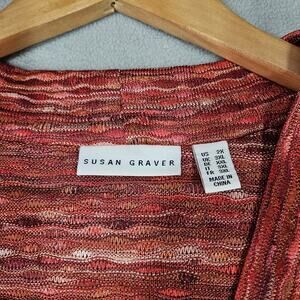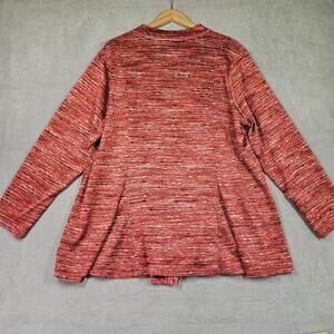 Susan Graver Sweater Knit Cardigan Womens 2X Red Pink Space Dye Godets Office