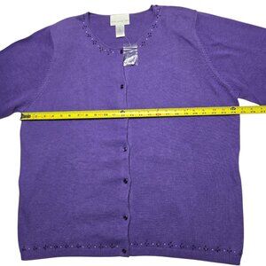 Susan Graver Sweater Womens Plus 1X Purple Beaded Cardigan Button Front